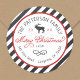 Barato impresso com etiquetas de endereço redondo impresso personalizadas, personalizadas com o nome da sua família, o ano e o seu endereço de devolução. Esta design de diversão apresenta um fundo listrado, gráfico de renas e tipografia rústica moderna em cores de cinza vermelha, branca e carvões. O texto diz "Feliz Natal" em uma letra de script de tendência. Use as ferramentas de design para editar fontes de texto e cores para personalizar ainda mais suas próprias etiquetas de endereço de retorno de feriado exclusivas.