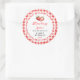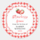 Um rótulo encantador de molho de morango “Feito na Cozinha de” com morangos, fundo xadrez vermelho e detalhes delicados em estilo de renda, em um estilo rústico de casa de fazenda. Perfeito para molho de morango caseiro, coberturas de sobremesa e produção em lote para presentes de comida atenciosos. Ideal para compartilhar com amigos, vizinhos ou professores, e adicionar a caixas de sobremesa, cestas e presentes. Adequado para presentes de primavera, verão, Dia dos Namorados e Natal. Personalize facilmente com seu nome, mensagem ou data para um toque caloroso e caseiro.
