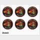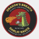 Cartoon de dragão verde segurando uma lâmpada de alho. Chama com a palavra alho sai da boca. Cor de fundo personalizada. Cinco campos de texto a serem personalizados.