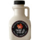 Folha de bordo vermelha realista com detalhes morfológicos sobre fundo branco. "Xarope de maple" escrito em texto branco de quadro de correspondência. Esta etiqueta de promocional é excelente para lembrar aos clientes que xarope de bordo é um produto natural "100% puro - feito por árvores".