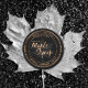Rótulo moderno de xarope de bordo. Rótulo do produto em folha de cobre preto e esmaecido com folha de bordo sutil.