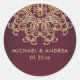 Uma bela MAROON BURGANDY BORDEAUX HUED e uma festa de ouro favorecem obrigados que você rotula e adesivos com um sari ornamental exótico, inspirado pelos índios, como um padrão de medalhão com um design floral e de lótus. Este elegante e belo adesivo ao estilo indiano é perfeito para qualquer ocasião formal ou especial, incluindo casamentos, noivados, festas de aniversário e aniversário ou qualquer elegante caso de gravata negra com uma noite arábica indonésia indonésia oriental ou tema aladino. © Chrissy H. Studios, LLC. Todos os Direitos Reservados.
