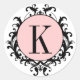 Adesivo Rótulo Rosa Damásico K Monograma de Casamento Bran