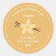 Um rústico com palheta de fundo kraft amarela Etiqueta adesiva e uma ilustração de uma flor de baunilha e suas varetas secas para seus produtos ou receitas caseiros à base de baunilha (extrato, varetas secas, bolo, sorvete, vela, sabão). Perfeito para rotular e compartilhar seus produtos artesanais com amigos e familiares, ou para vender seus produtos no mercado!