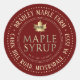 Dourada folha de açúcar e borda pontilhada de ouro em vermelho. "Xarope de maple" é impresso numa letra metálica biselada.