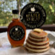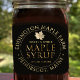 Edite seu nome comercial, endereço, volume de xarope de bordo e nível. Folha Dourada de açúcar com aranha Maple, escrita em texto metálico de ouro e uma simples borda.