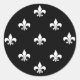 Os autocolantes redondos na sua escolha de dois tamanhos, com uma grande flur de lis design. Este é branco, e adicionamos um fundo preto, mas você pode facilmente mudar isso para qualquer cor que quiser. O fleur-de-lis é um lírio estilizado (em francês, flúor significa flor, e lis significa lírio) ou íris usada como design ou símbolo decorativo. É um símbolo de todas as coisas que França, Quebec, Nova Orleans e muitos outros lugares.