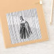 Esta é uma ilustração na moda a preto-e-branco que apresenta uma mulher envenenada num vestido dramático, fora do ombro, com embelezamentos florais intrincados e uma capa brilhante e fluente. O fundo tem uma textura vertical impressionante, acrescentando uma sensação de profundidade e movimento