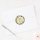 Este adesivo para lembranças de casamento de azeite tem uma grinalda de aquarela de ramos de oliveira com folhas verdes e azeitonas pretas. A mensagem "Infundido com Amor" e os nomes são escritos em uma fonte manuscrita; o resto é escrito em letras maiúsculas. Acima dos nomes há um pequeno coração dourado. O fundo parece papel pergaminho antigo.
