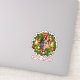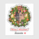 Este adesivo festivo apresenta uma bela coroa de Natal, rica em decoração com cones de pinheiro sagrado, ornamentos luxuosos, ouros, fitas de seda, arcos vermelhos e poinsetos. Personalize-o hoje substituindo a foto atual por qualquer foto carregada de seu dispositivo, edite o texto e surpreenda seu público com sua originalidade.