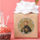 Peter Claver (1580-1654) era um padre jesuíta e missionário espanhol. Em 1610, a Rua Peter voluntariou-se para servir no Novo Reino de Granada nas Américas, que englobava o Panamá, a Colômbia e a Venezuela atuais. Lá trabalhou durante 40 anos ministrando escravos à chegada a Cartagena, um grande polo no comércio transatlântico de escravos, e nas plantações do campo vizinho. Seus incansáveis esforços não apenas para converter os escravos ao catolicismo pregando Cristos crucificados, mas para melhorar seus sofrimentos, lhe renderam o epíteto "Escravo dos Africanos". + Aqui Rua. Peter é mostrado clad no jardim jesuíta — um cassete preto e capa colorida. Ele tem uma simples cruz marrom de madeira e uma coroa de espinhos, símbolos de Jesus como "um homem de tristeza e conhecido pela dor" (Isaiah 53:3). A imagem é fechada numa armação interior que lembra uma janela gótica de rosa (ou roda) de oito pétalas; os cantos da simples estrutura externa quadrada são preenchidos com palitos heráldicos. Peter Claver morreu, em 8 de setembro de 1654, de causas naturais, após uma longa doença. Ele é santo protetor da justiça inter-racial, afro-americanos, missões africanas, escravos e República da Colômbia. + Banquete: 9 de setembro + Image Credit (BK 058): Imagem antiga de S[aint] Petrus [Peter] Claver, S.J., originalmente publicada em cromolithografia por B. Kühlen, Mönchengladbach, Alemanha, Série Jesuíta não numerada, final do século XIX, a partir da coleção privada de efemera religiosa do designer.