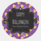 Adesivos temáticos de Halloween com balas de milho roxas e pontos dourados. Convites combinando disponíveis.