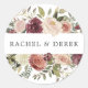 Coloque o seu convite em envelopes ou favores com estes elegantes adesivos florais de casamento que contêm os seus nomes enquadrados no topo e no fundo por rosas e mães de aquarelas em ricos tons de outono de burgundy, marsala, rosa-pincel e marfim, com folhas verdes escuras e folhagem. Projetado para coordenar com a nossa coleção de casamentos florais Rustic Bloom para outono ou casamentos no inverno.