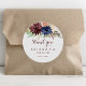 Este ouro rústico deixa obrigado floral... que o teu casamento a favor de um adesivo redondo clássico é perfeito para um casamento moderno. A design apresenta uma aquarela desenhada à mão, roxa, marinho, pincel, burgundy, flores de marinho, folhas verdes e douradas. Faça com que a etiqueta do adesivo seja sua, incluindo seus nomes, o evento (se aplicável) e a data. Esses adesivos podem complementar uma recepção de casamento, chá de panela ou qualquer evento!