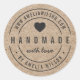 O adesivo Rustic Round Bold Handmade With Love apresenta a palavra "Feita à mão" em caracteres negros, "com amor" em script, um coração bonito e uma dupla borda para o seu endereço web e nome entre ele, em negrito, que é fácil personalizar tudo em uma kraft como um fundo padrão. É perfeito para hobbistas, artesãos e criadores de bens feitos à mão como artistas, tricistas, etc. Personalize-o substituindo o texto do marcador de posição pelo seu nome e endereço Web. Para obter mais opções, como alterar a cor do plano de fundo, a fonte, seu tamanho, espaçamento entre letras e para expandir ou contrair texto curvo, clique no botão "Personalizar". *Observe que a Marca d'água do Zazzle que aparece na visualização de zoom NÃO aparecerá no produto impresso final. © Rosewood e Citrus