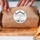 Rustic Handmade with Love Script Heart Bow Classic Round Sticker. Personalize seu produto e nome para tornar a etiqueta perfeita para as necessidades de sua pequena empresa.