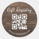 rustic wood gift registry qr code baby shower Classic Round Sticker