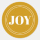 O típico adesivo rústico de Joy. Texto branco dentro de uma borda dupla branca, fundo dourado.