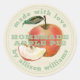 Um adesivo de torta de maçã assado, russo e moderno, feito em casa, com o texto feito com amor, torta de maçã caseira e seu nome em na moda verde-tipografia em um fundo branco antigo com um toque na moda de fatia de maçã vermelha pintada a aquarela. Basta adicionar seu nome e o nome do produto à etiqueta. Desenvolvido exclusivamente para você pelo Happy Dolphin Studio. Se precisar de ajuda ou produtos correspondentes, entre em contato conosco em happydolphinstudio@outlook.com.