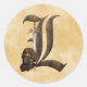 Uma letra gótica "L" texturizada em metal enferrujado, e decorada com um capacete de cavaleiros enferrujados e uma espada de fantasia brilhante e rica em decoração. Um presente maravilhoso para alguém que ama cavaleiros e senhores medievais. Talvez perfeito para pessoas que visitam ou participam do Renascimento Fairs.