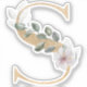 Florial da letra S monograma. A letra S, de textura castanha ouro, acentuada com folhas compostas de cor aquosa verde, flores e pó de ouro.