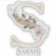 Florial da letra S monograma. A letra S, de textura castanha ouro, acentuada com folhas compostas de cor aquosa verde, flores e pó de ouro. Personalizado com o nome na fonte correspondente.