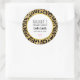 Velas ou adesivos de sabão com um padrão de na moda. Manchas negras negras exóticas num fundo de ouro. Um estilo selvagem mas elegante. Um quadro de círculo branco com uma borda falsa de folha de ouro colocada sobre cima com o seu dentro de texto personalizado.