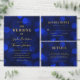 Adesivo elegante com as palavras "Pop Fizz Clink" em folha de ouro falso contra um fundo de luzes bokeh azul safira. Perfeito para festas de noivado, casamentos, aniversários, datas de nascimento ou vários outros eventos.