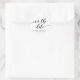 Adesivo elegante de "Salve a Data" com as palavras "Salve a Data" em uma fonte cursiva relaxada em preto contra um fundo branco.