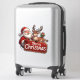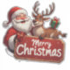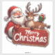 Santa Claus and a joyful reindeer hold a festive Merry Christmas sign amid falling snow, radiating holiday cheer, warmth, playful charm and family celebration for seasonal greeting cards and designs.
