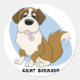 Santo elegante, adesivos Bernard! Um desenho do canino, a língua cor-de-rosa pendurada, está no centro com um fundo azul claro. Adorável animação de cão feita especialmente para os donos de Ruas Bernard! Arte original para cães Copyright © Menagerie Mayhem.