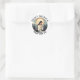 Este adesivo apresenta Ruas. Monica, santo paternalista de mulheres casadas, casamentos difíceis, relações difíceis com crianças e conversão de parentes. Ela era a mãe da Rua, Augustine e rezou por sua conversão. Santo Monica, reze por nós!