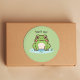 Um adesivo verde com uma ilustração de um sapo bonito no seu lago e texto personalizável acima! Você pode personalizá-lo com uma mensagem de aniversário para adicionar aos seus presentes para crianças ou um Obrigado. Você escreve uma mensagem de favor!