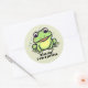 Um adesivo de desenho de sapo verde e bonito com a mensagem "Beije-me! Eu sou um príncipe"