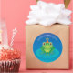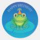 Feliz Sapo de Aniversário vestindo uma festa que se senta sobre uma almofada de lírio num fundo de azul. Use estes adesivos para colocar os toques finais em todos os seus desejos de aniversário para amantes de sapo. Feche seus convites ou obrigado que você envolve. Use como rótulos para tratar bolsas. Adicionar a sucatas de páginas e fotografias para sotaques.