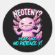 A savage cartoon-style axolotl with flared pastel gills, narrowed judgmental eyes, and a permanently unimpressed expression delivers the ultimate sarcastic line: “Neoteny? More Like No Patience-y!”