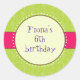 Um adesivo para aquela moça infeliz! Perfeito para uso no festa de aniversário ou no uso diário. Os tons brilhantes de verde e rosa chamam a atenção para este adesivo destacando sua mensagem no círculo contra o fundo girado folheado. Disponível em produtos correspondentes.