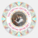 Cinza de Natal Personalizada, Feliz de inverno, Turquesa Brilhante Cor-de-rosa, cor-de-rosa, com ornamentação fotográfica. Decorre as cartas e envelopes para o Natal com esta cinza festiva, rosa e turquesa, marca geométrica do colete natalino Star. Dê ao seu cartão decorado e aos livros de recortes um brilho de cor maximalista, alegre e legal. Moderno decor de dopamina para cartas para Papais noeis e convites de festas de Natal alegres. Para pessoas que amam o sexy e colorido maximalismo de Natal. Personalize esta decoração do adesivo de quebra- cabeça com a sua própria mensagem ou saudação e imagens. #natalCartões #Natal moderno #DecorNatalDIYC