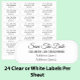 A set of laser cut, transparent save the date return address labels on clear self-adhesive stickers. This design has a two-line address, names that you can customize, and a script "Save the Date". Perfect for adding a minimalist return address to save the dates for a wedding or engagement party. Customize the couples' names and address information using the editor in the listing.