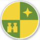 “Quarterly or and vert, in bend sinister a mullet of four points and a castle or.”