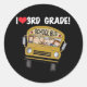 Um ônibus escolar amarelo cheio de crianças e texto que diz "I (coração) 3º ano!" é apresentado em T-shirts de professores do 3º ano, sacos para a escola, autocolantes, mousepads, ímãs, cartas e muito mais!
