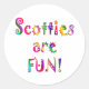 Os amantes escoceses sabem que é uma alegria estarem por perto. Compartilhe seu amor com este design de diversão colorido com as palavras Scotties são Divertidos!