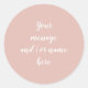 Um elegante e minimalista adesivo redondo, rosa-rosa personalizado clássico e personalizado para você personalizar com sua própria mensagem e nome na tipografia moderna do guião branco. Perfeito para uma vasta gama de profissões, incluindo: terapeutas de beleza, spas, centros de bem-estar, massagistas, estilistas, salões de unhas, artistas de cabelos e maquiagem, salões, professores, escritório, comércio eletrônico e varejo para citar alguns!Concebido por Thisnome©