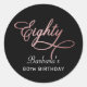 Adicione um toque pessoal e na moda à sua celebração com este adesivo redondo clássico com Rosa Dourado Script 80. Com elegante caligrafia rosa dourada falso e texto personalizável, esses adesivos são perfeitos para selar envelopes, favorecer bolsas, caixas de presentes ou decoração de festas. A forma redonda clássica e a design de inspiração metálica trazem uma sensação de charme de eterno e sofisticação para o seu evento de marco. Personalize com o nome, data ou mensagem da honestidade de aniversário para que os detalhes de seu evento se sintam especiais.