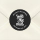 Apresentando o Black Elegant Script Save The Date Boho Wedding Classic Round Sticker, uma combinação perfeita de elegância moderna e encanto de vassoura. Este adesivo apresenta um roteiro preto sofisticado que anuncia maravilhosamente seu dia especial. Ideal para adicionar um toque personalizado aos seus preparativos de casamento, ele dá o tom para uma celebração na moda e memorável. Deixe este adesivo refinado fazer com que você salve a data inesquecível, assegurando que seus convidados antecipem ansiosamente seu grande dia.
