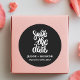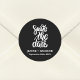 Introduzindo o Elegante Script Save The Date Boho Black Wedding Classic Round Sticker, onde a elegância do eterno encontra o boho chic. Apresentando um roteiro preto maravilhosamente trabalhado em um adesivo redondo clássico, este design capta perfeitamente a essência do seu dia especial. Ideal para personalizar seus anúncios de casamento, isso adiciona um toque de sofisticação para salvar a data. Faça uma impressão duradoura em seus convidados com este adesivo refinado e personalizável, definindo o palco para uma celebração inesquecível.