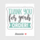 Faça com que todos os clientes se sintam apreciados com este adesivo vibrante "Obrigado pelo seu pedido". Apresentando uma ousada carta verde-menta, corações divertidos e uma escrita elegante, é a maneira perfeita de adicionar calor e profissionalismo à sua embalagem. Ideal para compras feitas à mão, marcas de butique e pequenas empresas que adoram fazer cada ordem se sentir especial.