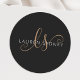 Escrita Feminina Dourada Preta Moderna Monograma com adesivo redondo. Personalize facilmente este adesivo elegante moderno com o seu monograma e nome personalizados.