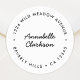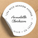 Uma etiqueta simples e na moda personalizada de endereço de retorno em uma fonte de script manuscrito contemporâneo em um estilo minialista moderno em um fundo branco limpo com um recurso de símbolo de ponto simples. O cúmplice de correio ou selo de envelope perfeito que pode ser facilmente personalizado com seu nome e endereço para um design!