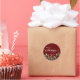 Pau clássico redondo clássico de Natal vermelho e verde tradicional. Com uma cor vermelha profunda e uma Decoração de Natal com uma cor-de-água, com bagas vermelhas, verde e cones de pinho. Uma letra branca suave no centro da carta dizendo Feliz Natal. Fácil de personalizar e mudar, ou manter como está. Este adesivo de Natal tradicional é versátil com muitos usos. Adicione a sua oferta como parte do empacotamento e da etiquetagem, adicione ao seu correio e envelopes, adicione sacos de presentes ou outros. É opcional ter o nome da família. Fácil personalizá-lo para seu nome de família ou excluí-lo. Veja os outros produtos correspondentes nesta coleção para um tema coeso.